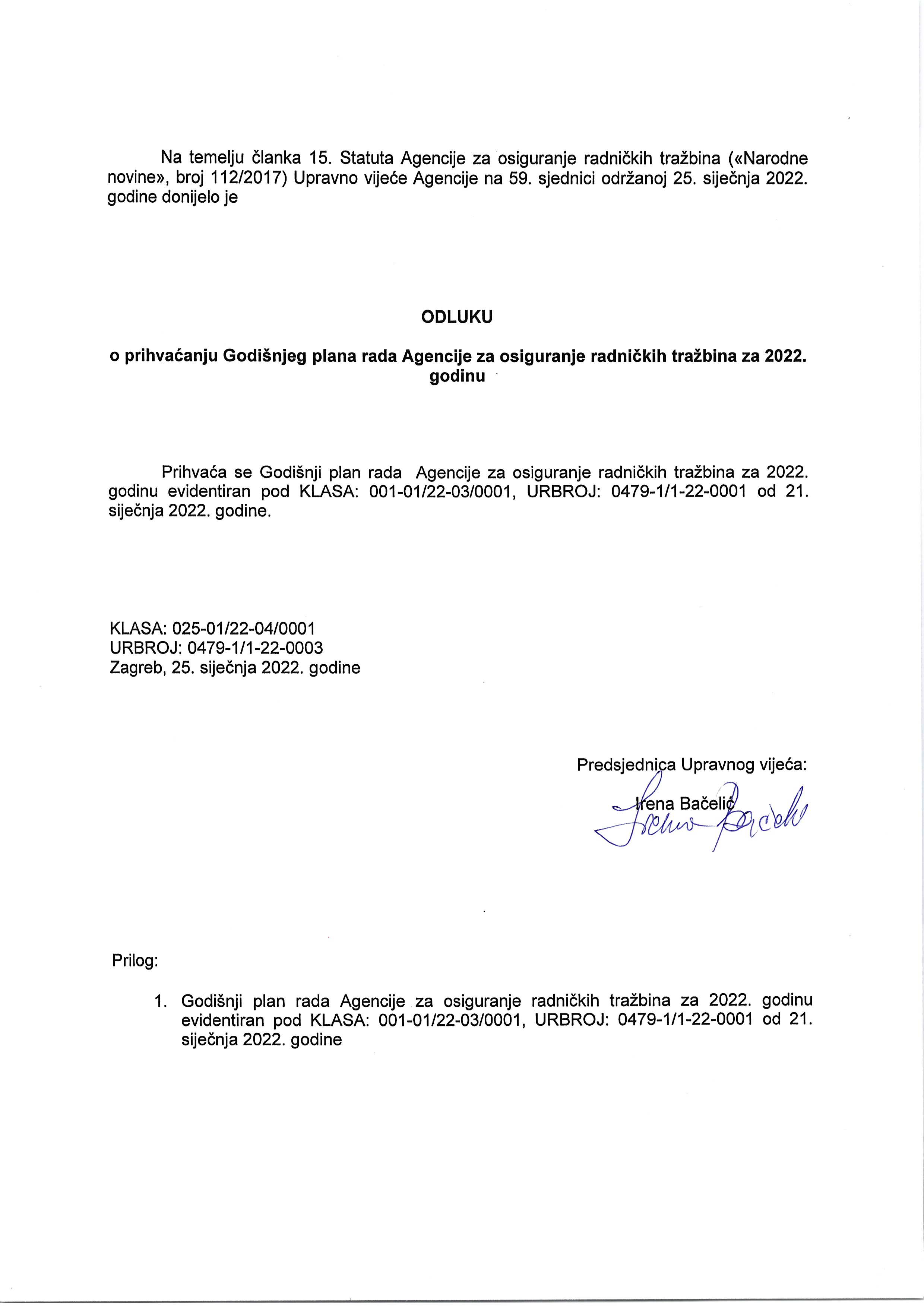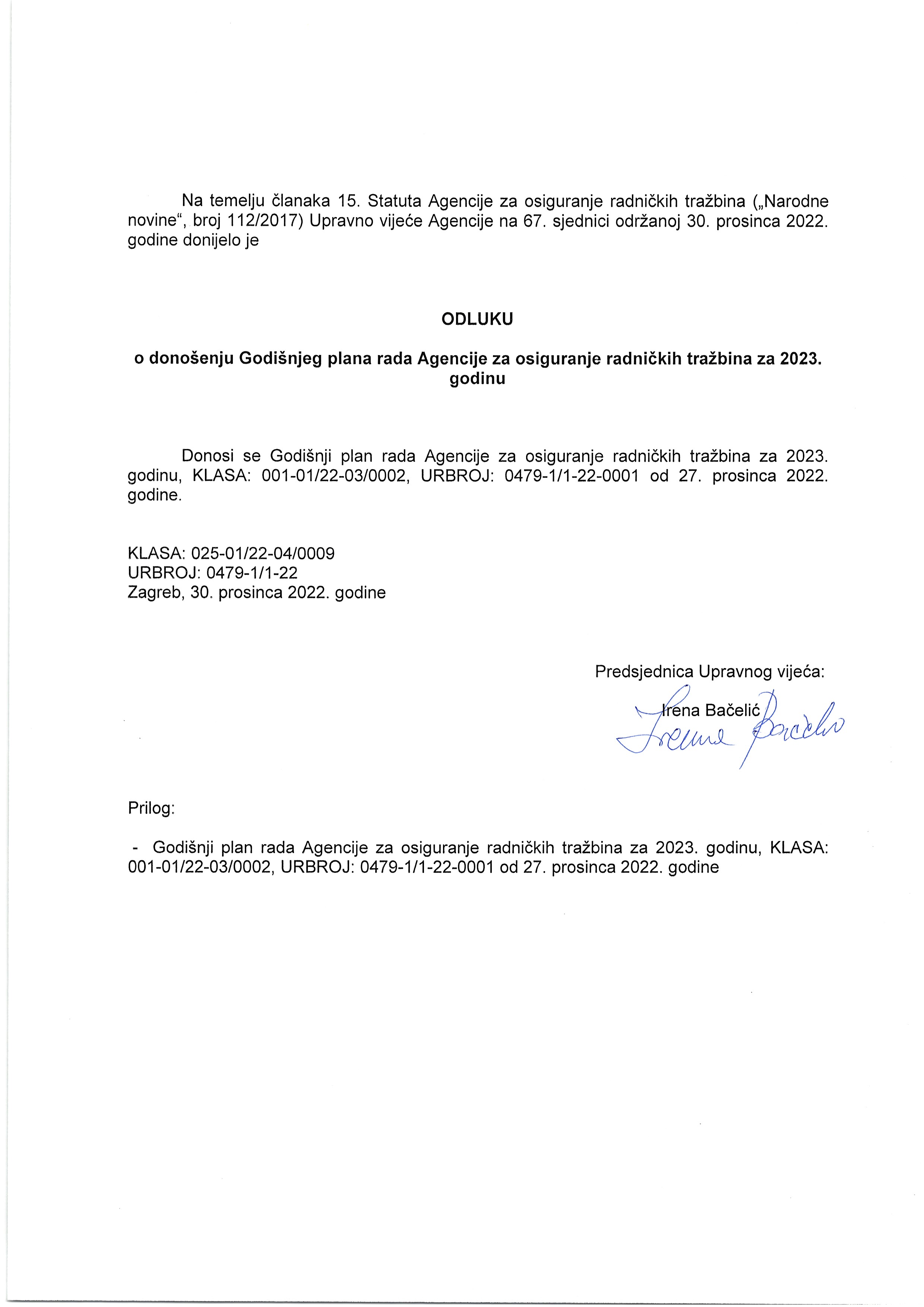 Sukladno članku 12. Zakona o pravu na pristup informacija („Narodne novine“, broj 25/13, 85/15 i 69/22) Agencija osigurava javnost rada objavom podataka o dnevnom redu i vremenu održavanja sjednica Upravnog vijeća Agencije, kao i mogućnošću neposrednog uvida u rad Upravnog vijeća.