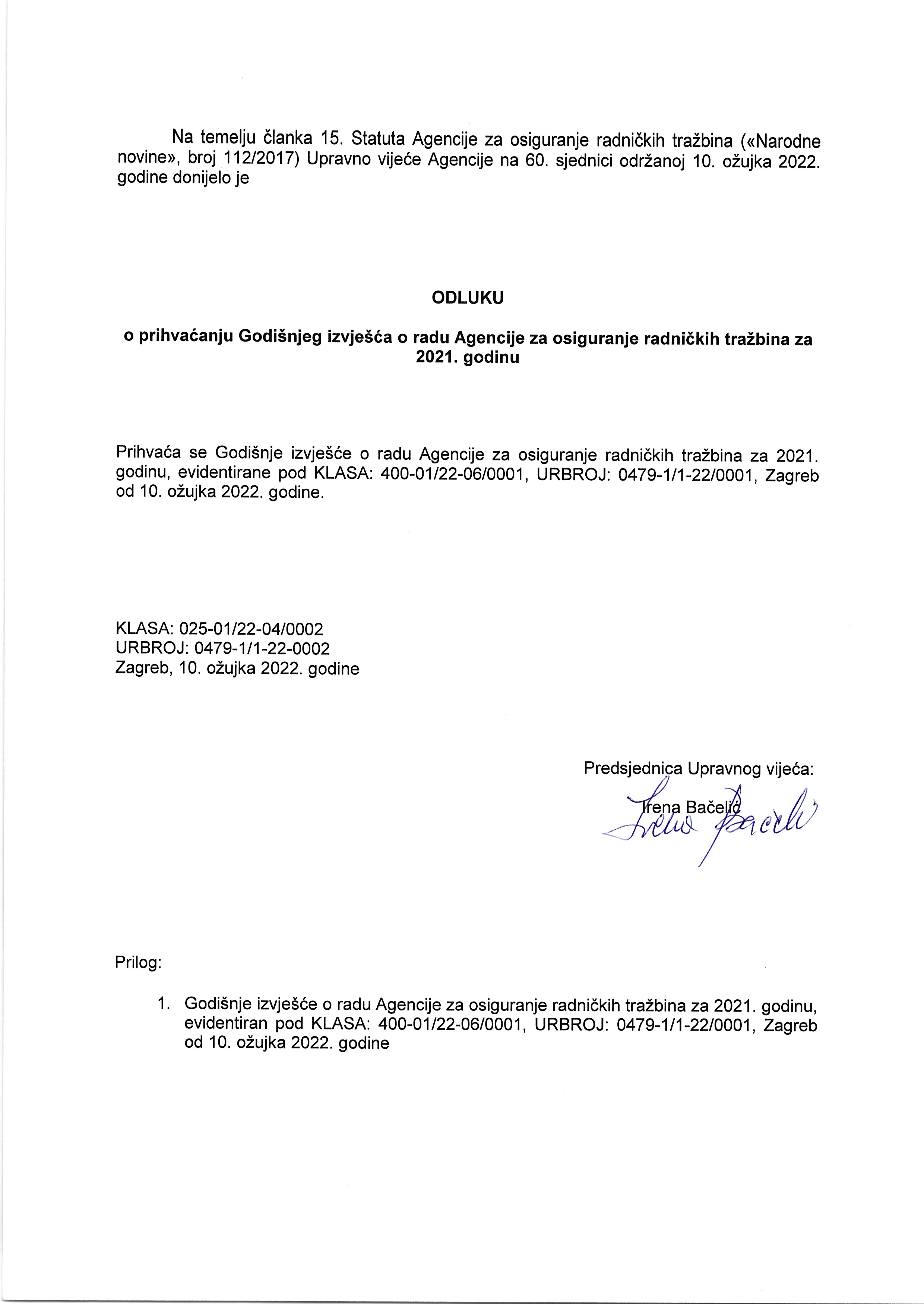 Agencijom za osiguranje radničkih tražbina upravlja Upravno vijeće Agencije, čiji su djelokrug, ovlaštenja i odgovornost uređeni Statutom Agencije („Narodne novine“, broj 112/2017).