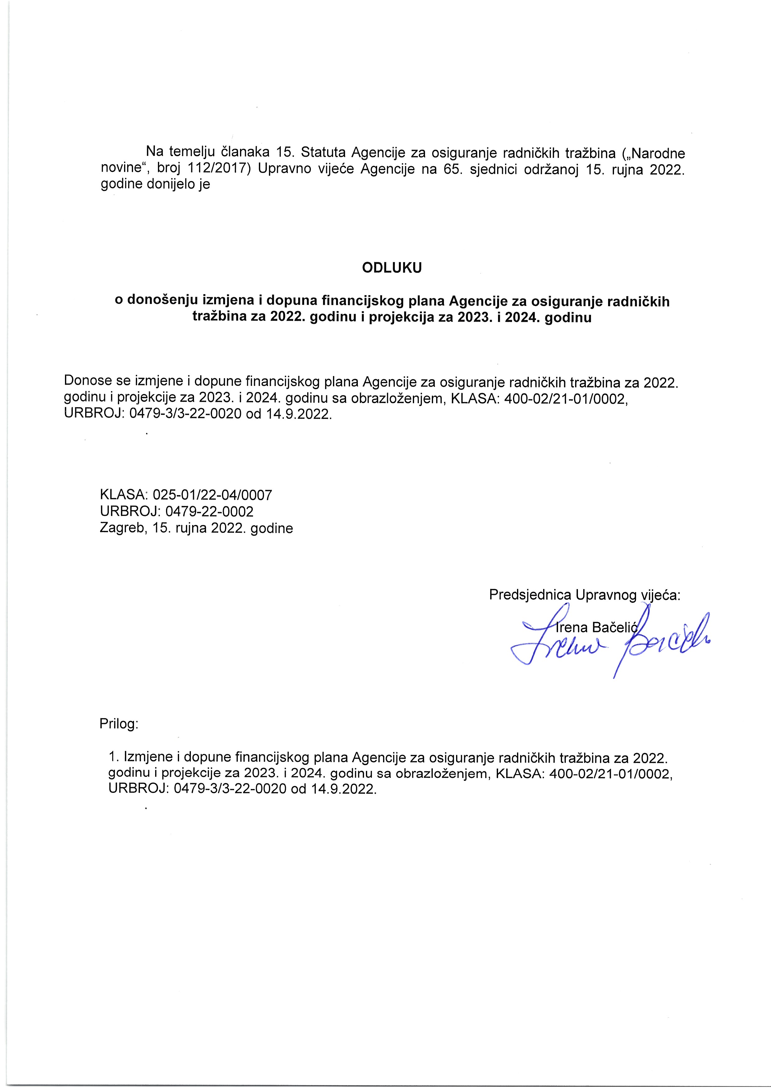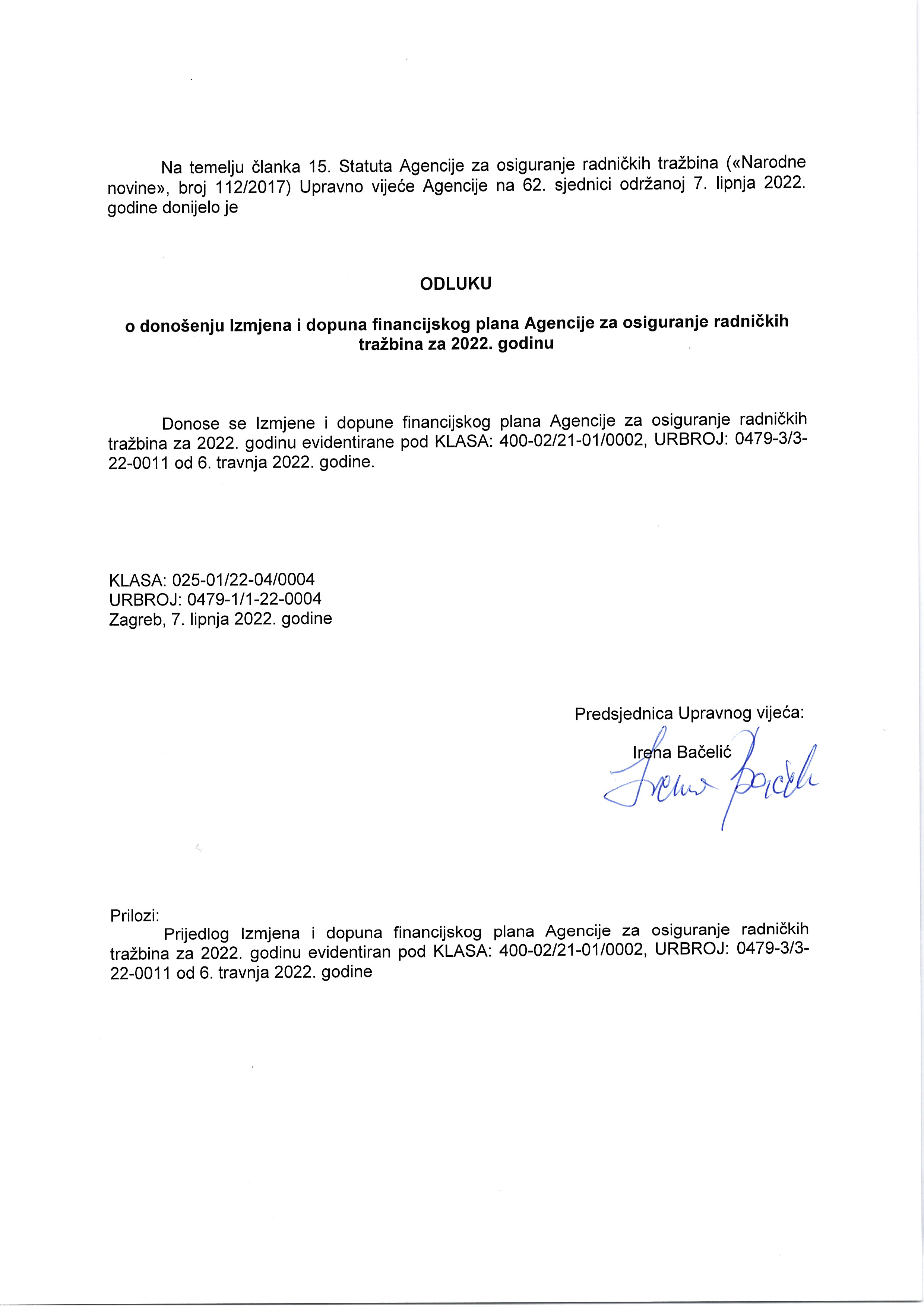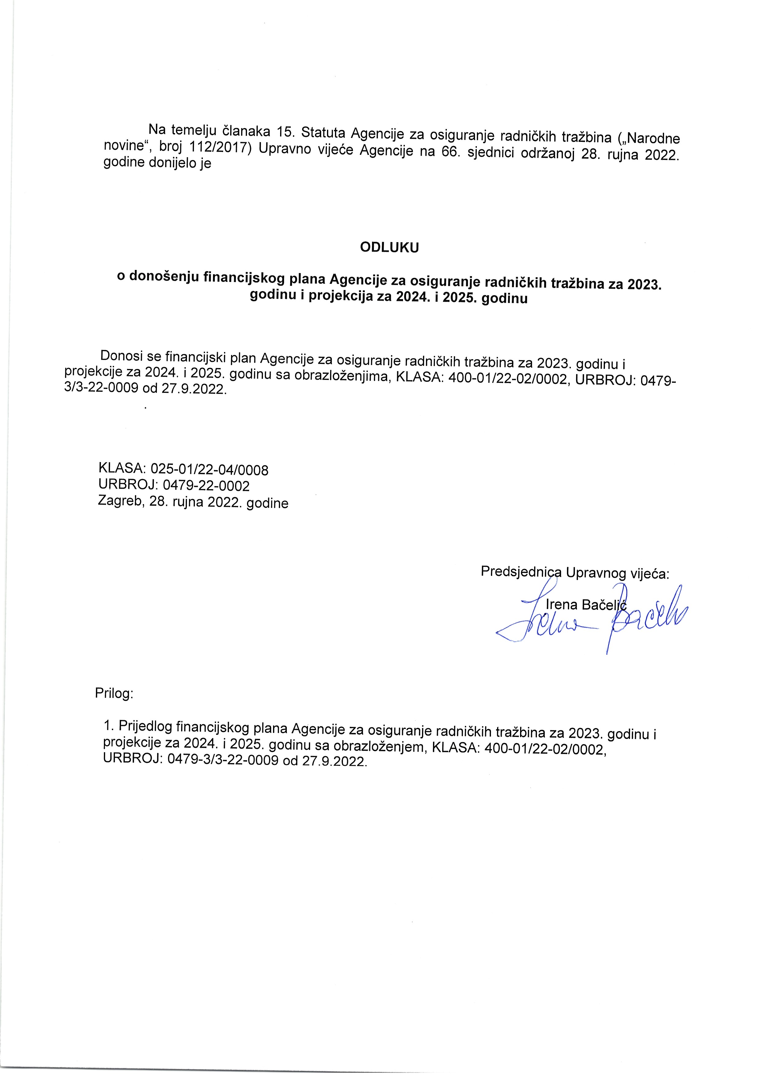 - poslovni i financijski plan Agencije,
